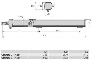 Zestaw siłowników do bram skrzydłowych BFT GIUNO ULTRA BT A20