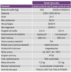 Siłowniki hydrauliczne do bram skrzydłowych rezydencjalnych oraz przemysłowych, przeznaczone do bram o masie skrzydła do 300 kg przy długości do 2,0 m (wersja GIUNO ULTRA BT A20).