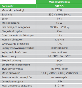 • Siłownik BFT VIRGO z wbudowaną centralą sterującą LINX